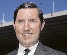 O'Farrell's tenure started well, with Bobby Charlton, Denis Law and George Best playing well and the club, 10 points clear at one stage, losing just one of their first 14 league games.[37] O'Farrell was named Manager of the Month for September and the club topped the table for the first time in three years in October.[38] After being top of the league at Christmas, Best failed to attend training throughout January and United scored only three goals in their first eight games of the year, losing the first seven.[26][39] O'Farrell's impersonal approach, whereby every player had to schedule an appointment to see him, did not help morale.[40] O'Farrell signed Martin Buchan for a club-record fee of £125,000,[41] as well as Ian Storey-Moore, who scored in all of United's five league wins in the second half of the season.[39] Once again, United ended the season in eighth place.[37][42]