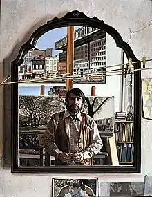 As a painter, Wright's work has been exhibited widely. His work was the subject of a solo exhibition, "Frank Wright: Paintings, Prints, Drawings" at Adams, Davidson Galleries, Washington, DC, which ran from May 6 until June 7, 1975, and of several solo exhibitions at the Kennedy Gallery also in WDC.[6] He had a solo museum exhibition entitled "Frank Wright: Paintings 1968-1980" at the Corcoran Gallery of Art, in Washington, DC, which was on display from June 13 until July 19, 1981. From 1970-2015, he was a professor of art at George Washington University, where his students included the noted painter, sculptor, and draughtsman Robert Liberace who credits Wright with having instilled into him a love of the old masters.[7] In his career, he produced 220 pieces of Art.[1][2]