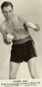 Frankie Klick (May 5, 1907 – May 18, 1982) was an American boxer who became a World Jr. Lightweight boxing champion when he defeated Kid Chocolate, on December 25, 1933, at the arena in Philadelphia, Pennsylvania, in a seventh-round technical knockout. In his career he fought the exceptional champions Henry Armstrong once, Barney Ross twice and Tony Canzoneri four times.[1] His managers were Joe Doran and Ray Carlin.[2]