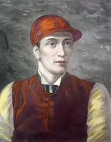 He was slim, graceful, with remarkably small hands and feet, and eyes of a cold blue-grey,[5] or, according to other sources, sorrowful brown eyes, in a long pale face.[16] He had pronounced front teeth, meaning his lips did not quite meet. He also had a round-shouldered stoop, typical of tall jockeys. He could have passed as a gentleman, and some, including Lord Rosebery, thought he may have been the son of Lord Wilton.[5]