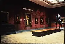 The interior of the house featured intricate artworks Schumacher collected in Europe, including statues, busts, and paintings.[32] There were works by Tintoretto, Andrea del Sarto, Lembach, and Houdon, etchings by Rembrandt, as well as Egyptian and Greek curios, and German, Bohemian, and Venetian glass.[19] These works also included a bronze statue called The Crusader; an 8-by-12-foot painting called Salome Before Herod, of Salome bringing the head of John the Baptist to Herod; Thomas Gainsborough's Girl in Blue and Gray, and sterling silver chandeliers from France.[32]