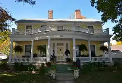 The Freeman-Brewer-Sawyer House is a historic house in Hillsboro, Illinois. The Greek Revival house was built in 1840, during the height of the style's popularity in the United States. The two-story house features six-over-six windows and a front entrance framed by pilasters, sidelights, and a transom; in addition, it originally had a portico supported by Doric columns. In 1904, the portico was replaced by a Classical Revival porch; the rounded, projecting porch features a balustrade along its roof, egg-and-dart molding, dentillation, and urn-shaped finials.[2]