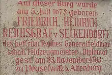 Friedrich Heinrich Reichsgraf von Seckendorff[1] (5 July 1673 – 23 November 1763, aged 90) was a Franconian field marshal and diplomat, in the service of the imperial Habsburg monarchy of Austria. Later he served as commander of the Bavarian army and fought Austria.