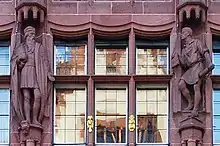 The Gutenberg Group from around 1905 in the facade of the building of the former newspaper Freiburger Zeitung is one of the earliest works of Friedrich Meinecke which is still preserved today.[1]