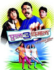 Full 3 Dhamaal is a 2008 Indian Marathi language comedy film directed by Mahesh Kothare who co wrote with Abhiram Bhadkamkar. Produced by Adinath Kothare, under the banner of Kothare & Kothare Vision. It stars Makarand Anaspure, Priya Arun, Abhiram Bhadkamkar, Kishori Godbole, Prasad Oak, Suchitra Bandekar and Dilip Prabhavalkar.[1] The plot of the film follows three female classmates who meet one day and decide to go on a trip and enjoys their lives as before while their husbands are away.[2]