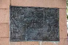 The main part of the monument is made of bronze and granite is 4.2 m × 1.7 m × 3.7 m (13.8 ft × 5.6 ft × 12.1 ft) in size. It sits on a granite pedestal measuring 1.05 m × 5.3 m × 7.4 m (3.4 ft × 17.4 ft × 24.3 ft).[1] The cross in the centre was 2 metres (6.6 ft) tall.[3]