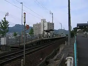 The station is served by the JR Shikoku Kōtoku Line and is located 10.8 km from the beginning of the line at Takamatsu.[3] Only local services stop at the station.[4]