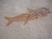 50 millions of years ago, at the beginning of the Eocene, the Apt and Céreste basins were covered by a vast inner lake. A tropical climate had created a rich fauna and flora, fossilized in thin plates of schistous limestone up to the Oligocene. Those various fossils correspond to a riverine flora and fishes, molluscs and insects.[3]