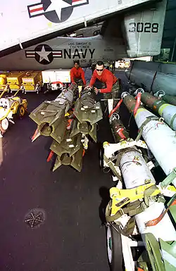 The GBU-16 Paveway II is an American Paveway-series laser-guided bomb, based on the 1,000-pound (450 kg) Mk 83 general-purpose bomb, but with laser seeker and wings for guidance. The GBU-16 was introduced into service around 1976 and is used by the U.S. Air Force, U.S. Navy, U.S. Marine Corps, and various NATO air forces.[1]