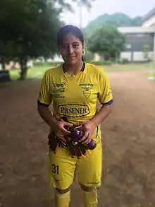 Her desire led her to participate in the Under-20 national pre-selection process, and play in the Pan American Games in São Paulo for the Ecuadorian women's national soccer team.[3] At 14 years old, she called up for the South American Women's Soccer Championship[3] by Under-17 by coach Vanessa Arauz to the Ecuadorian national team in the goalkeeper position.[5]