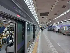 Gangdong Station (강동역, 江東驛, river east station) is a station on Seoul Subway Line 5. The line branches off to the northeast and the southeast at this point, with Gil-dong station to the northeast and Dunchon-dong station to the southeast. Cheonho station precedes it on the west.[1][2][3]