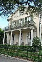 - Mayor Isaac W. Patton House, 1527 Washington Avenue, described in 1859 as "a handsome cottage residence," this Greek Revival house was erected for Lothrop Lewis Smith who purchased the site in 1853. It was his residence until he left New Orleans in 1859 and sold the house in 1861 to Mrs. Adolphe Jerome Odier. From 1873 until his death in 1890, it was the home of Isaac W. Patton, mayor of the City of New Orleans, 1878–1880. The entire square was sold in 1832 to H.W. Hills and William Lord Roberson by Matthew Morgan, Samuel J. Peters, Levi Peirce and William H. Chase, who in that year subdivided the Livaudais Plantation as Faubourg Livaudais, a part of the city of Lafayette that was annexed to the city of New Orleans in 1852. (Marker by New Orleans Landmarks Commission, 1985)[25]