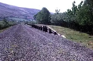 The station had two short staggered platforms with a passing loop and signal box. The station could only be accessed by a path from the Bala to Dolgellau road. Both platforms are still extant on farmland and can be seen from the A494.