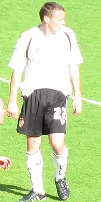 He scored the opening two goals of the 2007–08 season, in a 2–1 win over Brighton at the Alexandra Stadium.[10] This led to him being named on the League One 'Team of the Week'.[11] In 2007–08 his club once again had the best disciplinary record in the Football League.[12] Once again Roberts received the only Crewe suspension and red card of the season, when he was given a second yellow card in a heavy defeat to Doncaster Rovers. He received four yellow cards in the season, all of which were for unsporting behaviour. His disciplinary problems off the pitch also first began to come to light, as he was left out of the squad for the March 2008 match with Nottingham Forest due to a "training ground incident".[13] In June 2008 Roberts was placed on the transfer list by Crewe.[14][15] Cardiff City were rumoured to be interested in signing Roberts,[16] a fee of £150,000 was mentioned,[17] but a transfer never materialised. Instead he trained alone all summer before being given another chance by Crewe boss Steve Holland.[18] However, he failed to turn up at the club for pre-season training.[19]