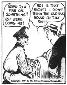 The strip originated on the Chicago Tribune's black-and-white Sunday page, The Rectangle, where staff artists contributed one-shot panels, continuing plots or themes. One corner of The Rectangle introduced King's Gasoline Alley, where characters Walt, Doc, Avery, and Bill held weekly conversations about automobiles. This panel slowly gained recognition, and the daily comic strip began August 24, 1919, in the New York Daily News.[5]