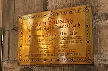 A Victorian brass plaque to Douglas exists in St Giles Cathedral in Edinburgh (placed on one of the southern columns).