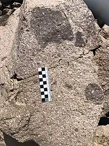 The earliest volcanic activity of the Lassen Volcanic Center commenced 825,000 years ago.[2] The Rockland complex formed between 825,000 and 609,000 years ago. It was the source of lava domes and lava flows of dacitic composition. Around 610,000 years ago over 130 km3[19] of rhyolite magma violently erupted onto the surface, producing massive pyroclastic flows and an ash plume several tens of kilometers high. This plume distributed ash almost entirely over the state of Nevada and sending traces as far as southeastern Idaho.[20] As the eruption progressed the underlying magma chamber was severely drained. This caused the overlying rock that was once supported by the magma to collapse downward. Forming a massive depression known as a caldera. Over 326.7 km3 of tephra was erupted during this event.[19] This could very well make the Rockland tephra the most voluminous eruption to have occurred in the Cascade Volcanic Arc, nearly twice the size of the Mazama ash. From 600,000 to 400,000 years ago,[21] eruptions built a large conical stratovolcano called Mount Tehama (also called Brokeoff Volcano) in what is now the southwest corner of the park[4] within the Rockland caldera complex.[22] It was made of roughly alternating layers of andesitic lavas and tephra (volcanic ash, breccia, and pumice) with increasing amounts of tephra with elevation.[17]
