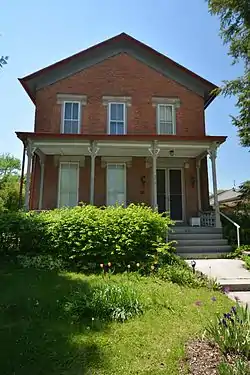 The George A. Wells House, also known as the Wells-Booker-Taylor House, is a historic residence located in Fairfield, Iowa, United States. Wells was a drugest and later a banker who settled in Fairfield in 1856. Because of financial difficulties he built the house over a period of four years, completing it in 1883.[2] He was also a local promoter who sat on the Parsons College board of trustees. A Republican, he served as an alderman and mayor of Fairfield. Samuel F. Booker, another community promoter and a farmer, was the second owner retired and died here. The two-story house is a combination of brick and frame construction. It is a late example of Vernacular Greek Revival style.[2] The back wing, which is the frame portion of the structure, is original to the house. It was listed on the National Register of Historic Places in 1983.[1]