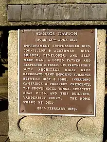 - 1 2 Budby (8 September 2012). "Brown plaque on Vanderbilt Court, Harrogate: George Dawson". flickr.com. Flickr. Retrieved 27 January 2023.