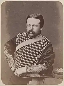 Blackwood was posted to the command of the E Battery B Brigade of Royal Horse Artillery, and ordered to join the force destined for Candahar. While stationed there the news arrived of the advance of Ayoub Khan, and a column was ordered out under the command of Brigadier-general Burrows to assist the wali placed in command by Abdur-rahman Khan, and to investigate the strength of the enemy.[2] To that column Blackwood's battery was attached; the column was destroyed in the Battle of Maiwand on 27 July 1880, where Blackwood was killed and buried in the field, and two of his guns lost. They were later recovered after Ayub's defeat on 1 September 1880, and were presented to Frederick Roberts by the government.[1]
