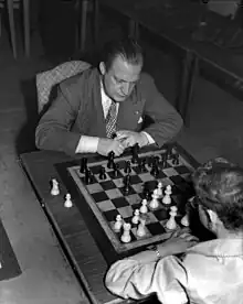 Possessed of an incredibly powerful memory, Koltanowski would give blindfold exhibitions, playing several games simultaneously.[4] In Edinburgh in 1937 Koltanowski set a record by simultaneously playing 34 games of blindfold chess. Later, Miguel Najdorf broke that record, but Koltanowski claimed his efforts were not properly monitored. Najdorf played 40 games at Rosario, Argentina in 1943 and 45 games in São Paulo in 1947.[5][6]