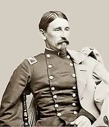 In late 1862 Willard, by then a major in the 19th U. S. Infantry, organized and became colonel of the 125th New York Volunteer Infantry Regiment.[2] Willard was allowed to retain his commission in the regular army. He suffered misfortune while commanding his regiment at Harpers Ferry, West Virginia, in 1862. His raw recruits did not distinguish themselves in the Battle of Harpers Ferry, in which they fell apart under fire during the fighting on Bolivar Heights. They were too frightened, especially by the enfilade fire coming in from Loudon Heights to rally.[3] When the garrison was surrendered to Stonewall Jackson by Col. Dixon S. Miles, Willard and his men became prisoners of war.