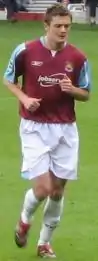 He went on to make 25 appearances in all competitions for West Ham during the 2006–07 season.[5] McCartney scored his first goal for The Hammers, a strong back post header, in a friendly against Roma one week before the start of the 2007–08 season.[9] He scored his first Premier League goal for West Ham in the 1–1 home draw with Bolton Wanderers on 4 November 2007 with a magnificent volley.[10] At the end of the 2007–2008 season McCartney received the runner up Hammer of the Year Award, having played in all 38 Premiership games. McCartney's sale back to his former club Sunderland led to West Ham manager Alan Curbishley resigning after he claimed the player was sold against his wishes.[11]