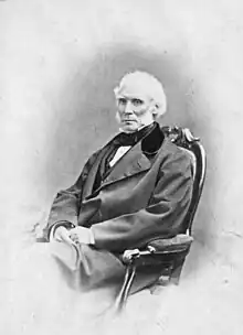 In the first general elections in 1841, Moffatt was elected by acclamation to the Legislative Assembly of the Province of Canada as one of two members for the city of Montreal, alongside Benjamin Holmes, another Montreal businessman.[1][9] During his time in Parliament, Moffatt supported the union of the Canadas and was a consistent supporter of the government of the governors-general, as a member of the "British Tory" group from Canada East. He opposed the restructuring of the ministry in 1842 with a stronger Reform balance.[10] However, Moffatt resigned in 1843 to protest the proposal to move the seat of government from Kingston to Montreal, on the basis that it was unfair to the residents of Canada West to have the government so far away; Kingston was in Canada West, but close to the border with Canada East. In the subsequent by-election in November 1843, Moffatt was replaced by Pierre Beaubien.[11]