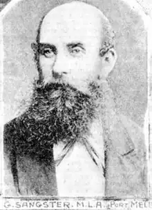 - ↑ "DEATH OF MR. SANGSTER, M.L.A." The Argus (Melbourne). No. 21, 435. Victoria, Australia. 9 April 1915. p. 6. Retrieved 10 October 2022 – via National Library of Australia.