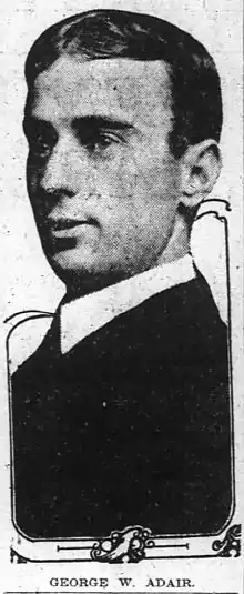 George Washington Adair Jr. (b. 1874, Atlanta; d. November 5, 1921, Atlanta)[1][2] was the son of Col. George Washington Adair, an important developer of real estate in Atlanta and of the Atlanta streetcar system. Adair Jr. also worked in real estate development in partnership with his brother Forrest, and together they developed today's historic neighborhoods such as Adair Park, West End Park (now known as Westview), and, in conjunction with Asa Candler, Druid Hills.[3] He married Sarah Glenn in 1897.