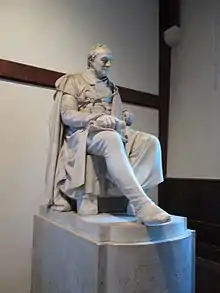 Wyndham was a member of the Whig party. In 1787, he bought the pocket borough of Midhurst and used it to return his two younger brothers, Charles and Percy, to the House of Commons. Charles only served in one parliament for Midhurst and by 1796 the seat had been sold to Lord Carrington.[23] When the party split in 1792 over the French Revolution he sided with the more conservative faction which supported Prime Minister William Pitt the Younger in his condemnation of the "wicked and seditious" writings of radicals such as Thomas Paine.[24] He opposed the Poor Law Amendment Act of 1832 which introduced the harsh workhouse system. When the Sussex Poor Law Commissioner William Hawley visited Petworth House in October 1835 he was politely received but was informed that the earl considered the Act "one of the worst measures that could have been devised".