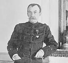 In the summer of 1899 the court of appeals ordered a new trial for Dreyfus.[18] Before the trial began de Pellieux stood before a council of inquiry to answer charges of collusion with Esterhazy. At the trial Dreyfus was again found guilty, to general surprise. Dreyfus received a Presidential pardon on 19 September 1899, but was denied the right to clear his name in a trial (he was eventually rehabilitated by the Court of Cassation in 1906 and reinstated in the Army).[19] George Gabriel de Pellieux died on 15 July 1900 in Quimper, Brittany, France.