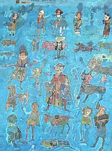 - ↑ Notes and References, p. 41, note 8, in "Georgeta Naparus" by Radu Bogdan, it is mentioned that "Legend" is painted on top of another painting, "In the parents' house", a painting exhibited in Belgrade and Zagreb in 1966, that had vague influences from Marc Chagall. "
