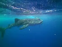 The aquarium's notable specimens include whale sharks, beluga whales, California sea lions, bottlenose dolphins, manta rays, sea otters, and tiger sharks.[4][5] Its centerpiece is a 6.3 million US gallons (24,000 m3) whale shark exhibit.[6][2]