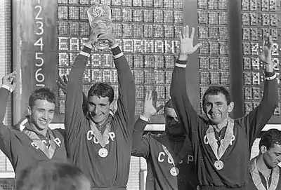 Georgy Yakovlevich Prokopenko (Russian: Георгий Яковлевич Прокопенко, Ukrainian: Георгій Якович Прокопенко; 21 February 1937 – 5 May 2021) was a Soviet swimmer who competed at the 1960 and 1964 Summer Olympics. In 1964 he won a silver medal in the 200 m breaststroke and finished fourth in the 4 × 100 m medley relay.[2] He won three European titles in these events in 1962 and 1966,[3] and set two world records in the 100 m breaststroke in 1964. Between 1962 and 1964 he also set eight European records in the 4 × 100 m medley relay and in the 100 m and 200 m breaststroke disciplines.[1]