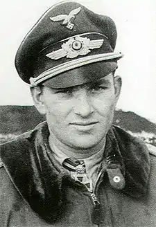 Gerhard "Gerd" Barkhorn (20 March 1919 – 11 January 1983) was a German military aviator who was a renowned wing commander in the Luftwaffe during World War II. As a fighter ace, he was the second most successful fighter pilot of all time after fellow pilot Erich Hartmann. Other than Hartmann, Barkhorn is the only fighter ace to ever exceed 300 claimed victories.[1] Following World War II, he became a high-ranking officer in the German Air Force of the Federal Republic of Germany.