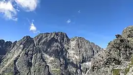 Gerlachovský štít (, translated into English as Gerlachov Peak, German: Gerlsdorfer Spitze, Hungarian: Gerlachfalvi-csúcs), informally referred to as Gerlach, is the highest peak in the ⓘHigh Tatras, in Slovakia, and in the Carpathian Mountains. Its elevation is usually listed at 2654.4 m above mean sea level. The mountain features a vertical rise of approximately 2,000 metres (6,600 ft) above the valley floor.[4]