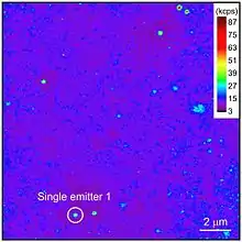 The germanium-vacancy center (Ge-V) is an optically active defect in diamond, which can be created by doping germanium into diamond during its growth or by implanting germanium ions into diamond after its growth. Its properties are similar to those of the silicon-vacancy center in diamond (SiV). Ge-V can behave as a single-photon source and shows potential for quantum and nanoscience applications due to its narrow zero-phonon line (ZPL) and minimal phononic-sideband (compared to that of the nitrogen-vacancy center (NV)).[1]