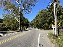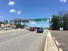 Upon crossing Arch Road, Germantown Pike enters Plymouth Township and becomes a four-lane undivided road, heading southeast through suburban residential areas and passing through the community of Plymouth Valley. The road turns south and then southeast as it passes homes and some commercial establishments, becoming a four-lane divided highway as it comes to an intersection with Sandy Hill Road to the southwest of Villanova Ballpark at Plymouth. At this point, Germantown Pike becomes State Route 3053 (SR 3053), an unsigned quadrant route. Germantown Pike turns into a five-lane road with a center left-turn lane and heads south through commercial areas. Past the Hickory Road intersection, the road becomes a six-lane divided highway and passes businesses as it heads to the west of the Plymouth Meeting Mall. Germantown Pike crosses Plymouth Road in the community of Hickorytown and reaches the Mid-County Interchange, where it comes to the Norristown interchange with the Pennsylvania Turnpike (Interstate 276, I-276) that also provides access to northbound I-476 (Pennsylvania Turnpike Northeast Extension) before a partial interchange with I-476 that provides access to southbound I-476 and access from northbound I-476. Following this, Germantown Pike becomes a four-lane divided highway and passes under Norfolk Southern's Morrisville Line before it heads into commercial areas, narrowing to a two-lane undivided road at the Chemical Road intersection. The road turns southeast and comes to an offset junction with Butler Pike in the community of Plymouth Meeting. Past here, Germantown Pike heads into Whitemarsh Township and runs through suburban residential areas with some businesses, passing southwest of Plymouth-Whitemarsh High School before heading to the northeast of a golf course. The road crosses Joshua Road in the community of Lafayette Hill and continues past a mix of homes and businesses. Germantown Pike makes a turn to the east at the Church Road intersection and heads through wooded residential areas, crossing into Springfield Township and curving southeast after passing south of a golf course.[4][5]
