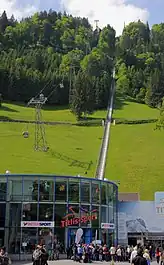 Gerschnialpbahn is a funicular railway in Obwalden, Switzerland. The line leads from Engelberg at 1000 m to Gerschnialp at 1262 m on the slopes of Titlis (3239 m). The funicular with two cars has a single track with a passing loop and a tunnel (88 m) at upper end. Journey time is 5 minutes. It operates all year.[3]