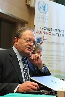 ![]() Deputy Minister of Sport and Recreation South Africa, Gert Oosthuizen, addressing the participants of the 3rd Plenary Session of the Sport for Development and Peace International Working Group (SDP IWG) held at the UN Office at Geneva (UNOG), Switzerland, as a keynote speaker. | |