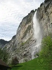 "Gesang der Geister" has been contrasted with "Mahomets Gesang" (transl. Mahomet's Song),[1][2] a 1772–73 poem by Goethe which describes the course of an idealised river from a mountain spring to the ocean. Both poems are examples of Sturm und Drang ("Storm and Stress"), a German proto-Romantic aesthetic movement with an emphasis on subjective experience. Victor Hehn interpreted "Gesang der Geister" as an extended Romantic metaphor, in which the repeated ascent and descent of water between Heaven and Earth represents man's attempt to grasp both the mundane and the eternal, and the contrast between the restless cascade and the tranquil lake is between stormy passions and calm reflection, in a kind of mysticism or pantheism where these opposites blend to form a natural whole.[1] Peter Härtling suggested that the poem could be read in the context of an attempted distancing by Goethe from Charlotte von Stein.[3] Terence James Reed thought that the wind symbolises the psychological disturbance caused by love.[4]