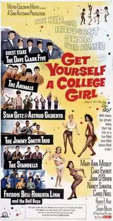 Get Yourself a College Girl, also released as The Swingin' Set, is a 1964 Metrocolor film comedy in the style of a beach party movie. The plot involves a college student who tries to balance her time writing songs and dealing with her publisher who tries to pursue her. It was directed by Sidney Miller and written by Robert E. Kent, and filmed at Sun Valley, Idaho, United States.[2]