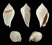 Five views of a shell of Gibberulus gibberulus Mörch, 1850 | |