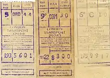 The Gibson also improved upon the Bell Punch system by having meters to record the numbers of each individual type of ticket issued. Other advantages included faster issuing of tickets, that the conductor would have more hands free, and that tickets did not need to be specially pre-printed.[7] The latter also meant that companies was no longer had to account for an asset that needed to be audited, as the paper rolls have very little worth in comparison to a pre-printed ticket that could be stolen/pilfered.[8] By October 1958 Bell Punch machines on LT had been completely replaced (Poplar and West Ham trolleybus depots being the last to use them).[1][4]