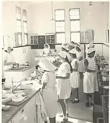 Cooking class at a girls' school in Jerusalem, c. 1936. Girls' upbringing and education were traditionally focused on preparing them to be future wives.