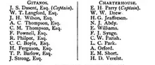 The earliest known report of the club playing an external fixture dates from 1867. [4] As a "select" club, in an era before players concentrated their efforts on one club, the Gitanos enjoyed the ad hoc services of a number of prominent players of the day, such as Arthur Kinnaird, Edgar Lubbock, Albert Thompson, George Holden of the Clapham Rovers, and J.H. Giffard of the Civil Service.[5] There was a particular overlap with the Wanderers as old boys of Eton and Charterhouse were eligible for both sides.