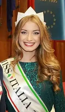 She was born in Pisa but soon she moved to Messina, Sicily, her parents' city of origin. In 2013 she participated in the Miss Italia beauty contest with the band of "Miss Cinema Planter's Sicilia", being elected winner; she was also elected Miss Cinema.[3] She is the first Miss Italia to have been elected live on La7, as well as the first Miss Italia to be elected in Jesolo after Salsomaggiore Terme was abandoned as its headquarters. Giulia Arena was the tenth Miss Italia from Sicily. At the time of the victory, she was still a student of faculty of Jurisprudence of Università Cattolica del Sacro Cuore.[4]