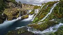Gjáin (Icelandic pronunciation: [ˈcauːɪn] ) is a small valley with small waterfalls, ponds, and volcanic structures situated in ⓘÞjórsárdalur in the south of Iceland. It is to be found at about half an hour walking distance from the historical farm Þjóðveldisbærinn Stöng. Through the valley runs the river Rauðá with the waterfall Gjárfoss.