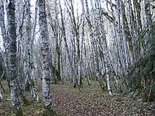 In the most general sense, a glade or clearing is an open area within a forest.[1][2] Glades are often grassy meadows under the canopy of deciduous trees such as red alder or quaking aspen in western North America. They also represent openings in forests where local conditions such as avalanches, poor soils, or fire damage have created semipermanent clearings. They are very important to herbivorous animals, such as deer and elk, for forage and denning activities.